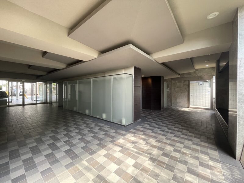 タイル貼りの外観がスタイリッシュで、オートロックや防犯カメラ、宅配ボックスが設置されており、安全性も高いです。エントランスは管理が行き届き、美しく落ち着いた雰囲気です